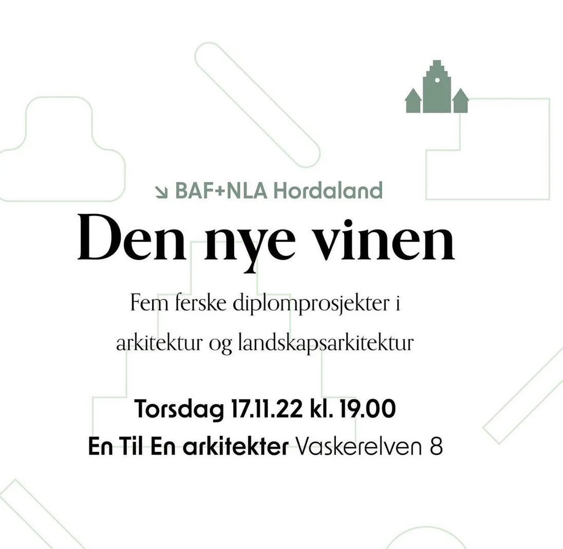 Bergen arkitektforening og NLA Hordaland inviterer til beaujolais- smaking og presentasjoner av fem diplomprosjekter innen arkitektur og landskapsarkitektur.